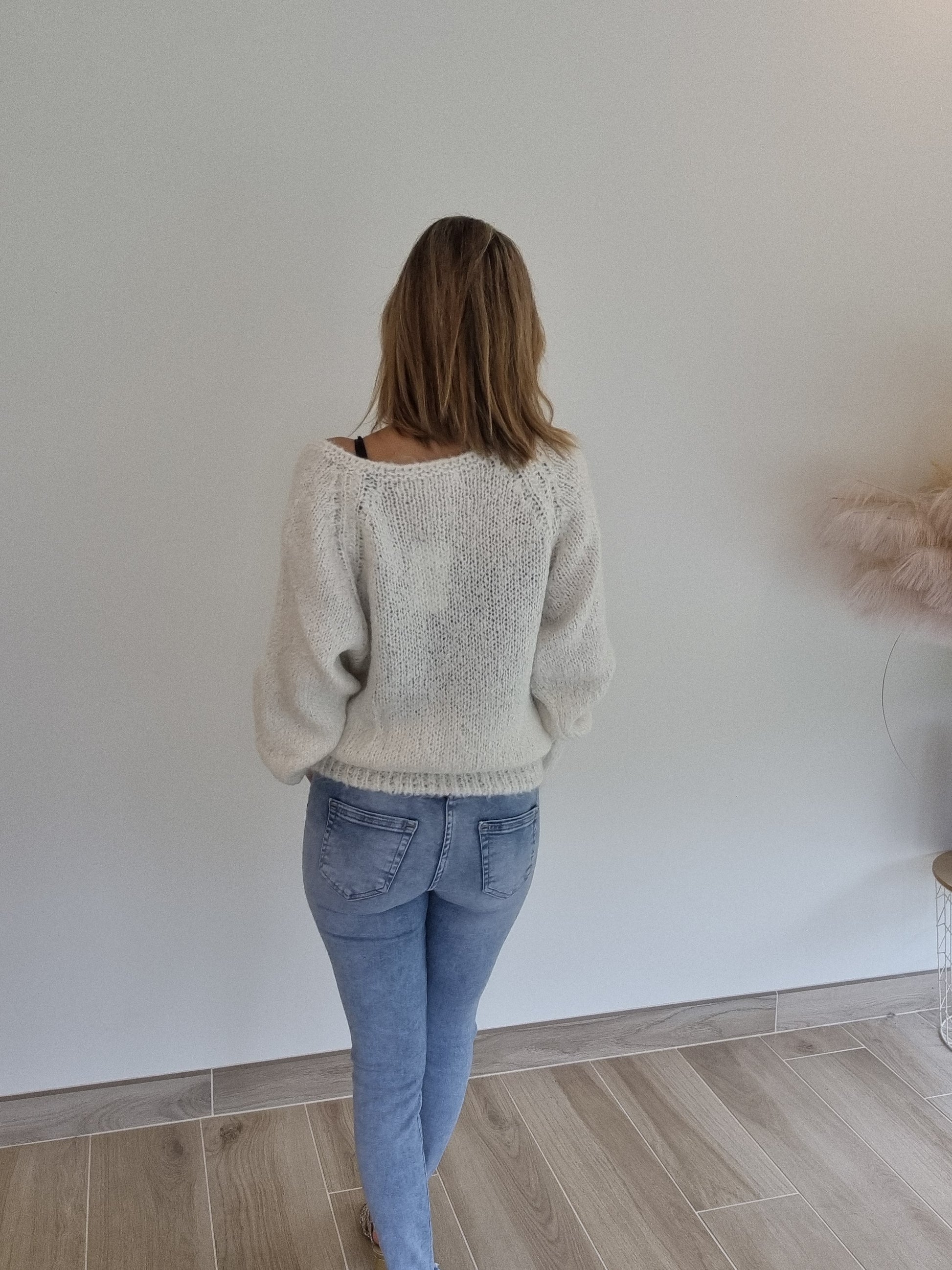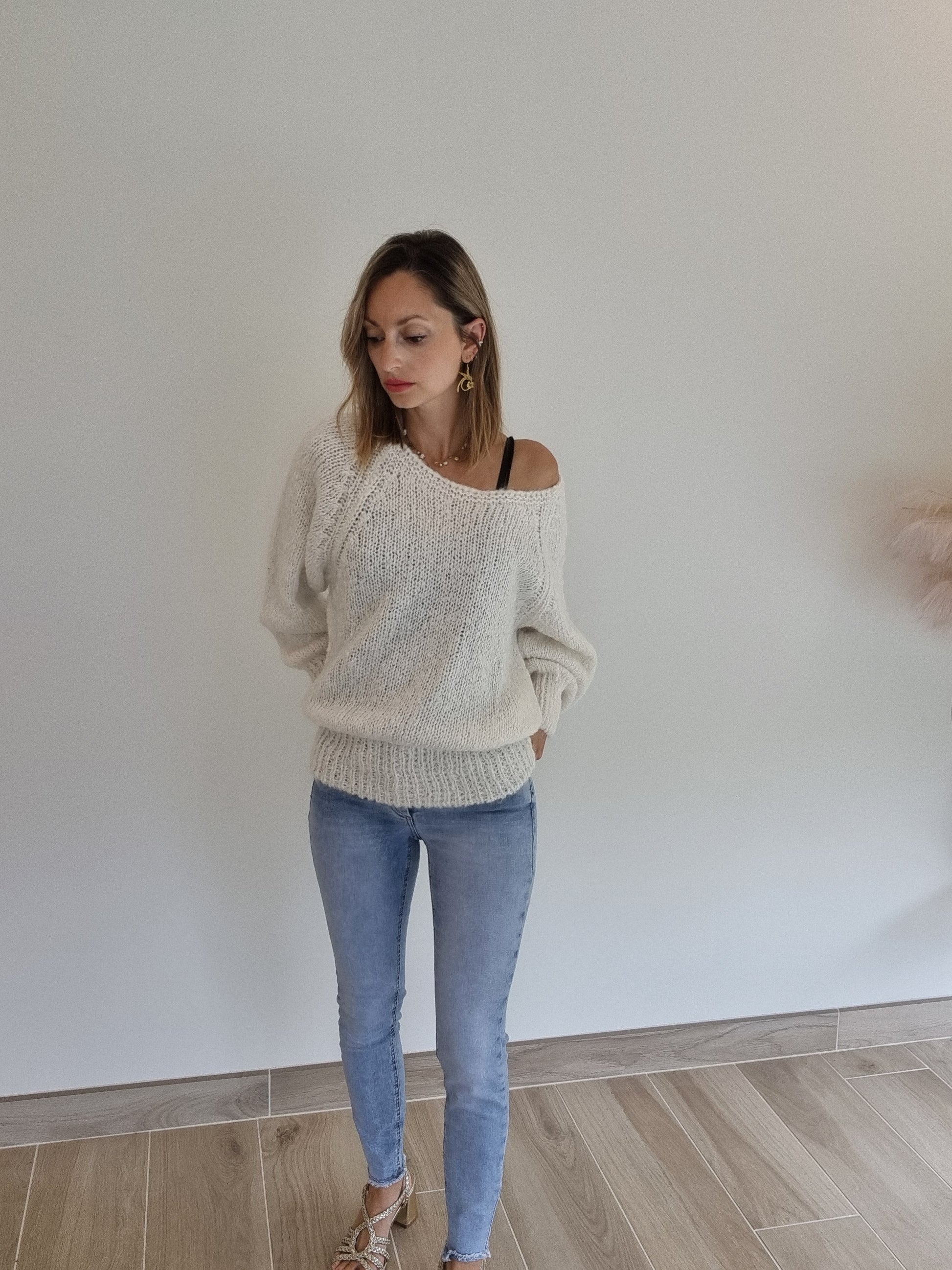 Ce pull allie confort et élégance avec sa coupe ajustée et ses manches légèrement bouffantes.